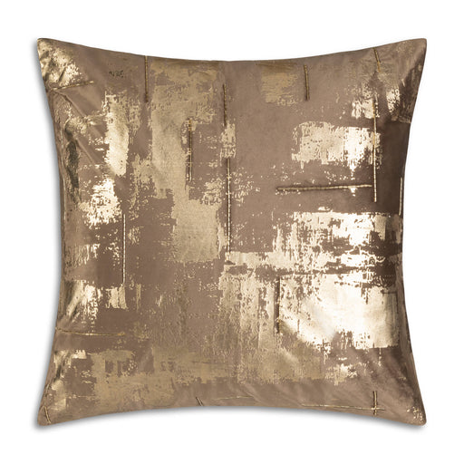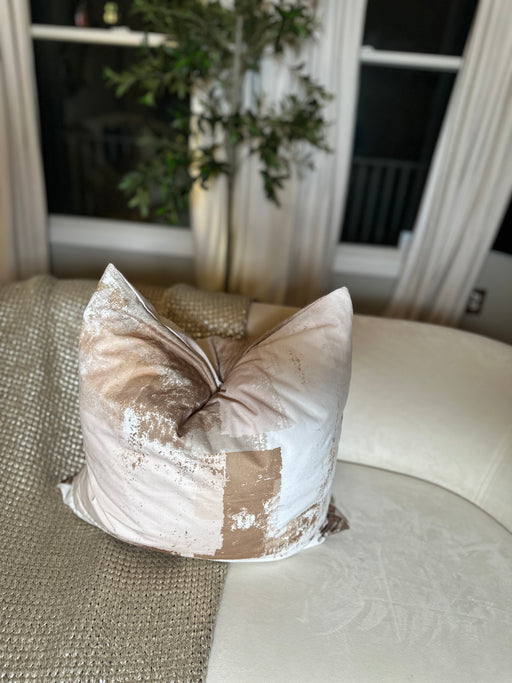 Get cozy with this beautiful stone velvet pillow featuring a gorgeous gold foiling and beading.