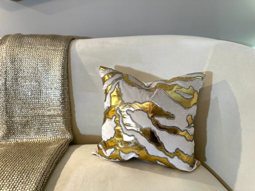 Ivory Gold Animal Print Velvet Pillow Cover 20"x20"